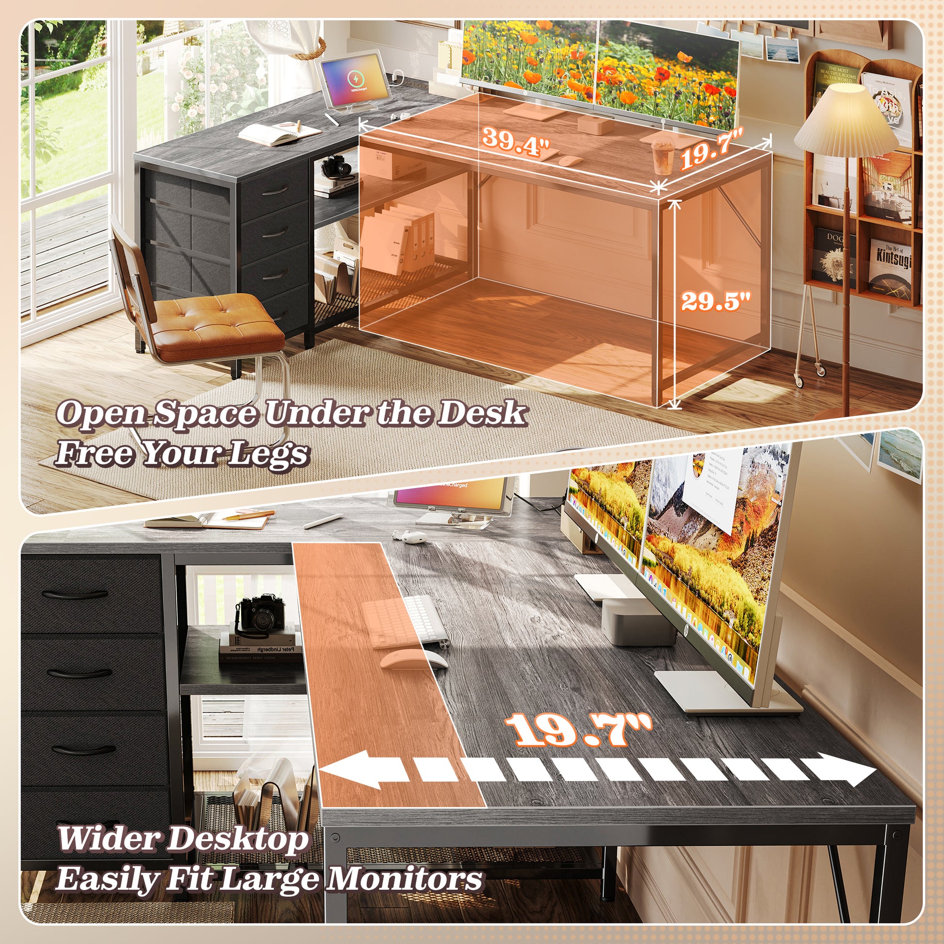 - 【Reversible L Desk with Storage】Utilize your corner space and get 2 distinct work zones with this work desk for home office that adapts to your workflow. Need one side for your laptop and another for your printer, craft projects or gaming setup? This home office desk wraps around you like a command center, giving you more focus than a straight desk ever could. With its reverisble design, this large desk is deal for multitaskers and various home layouts