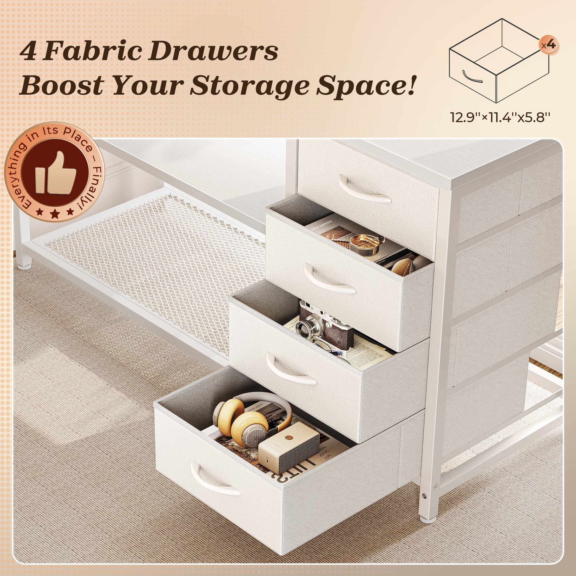 - 【Oversized Desktop & 4-Drawer Storage】Working in a small room? This l shaped office desk offers a wide surface. Main desk fits dual monitors, keyboards, or gaming setups. Side desk holds your printer, notebooks, or a second laptop. 4 fabric drawers and 2 open shelves (adjustable wood & mesh shelf) of the corner gaming desk give you the storage flexibility you need or remove shelves entirely for tower PC space