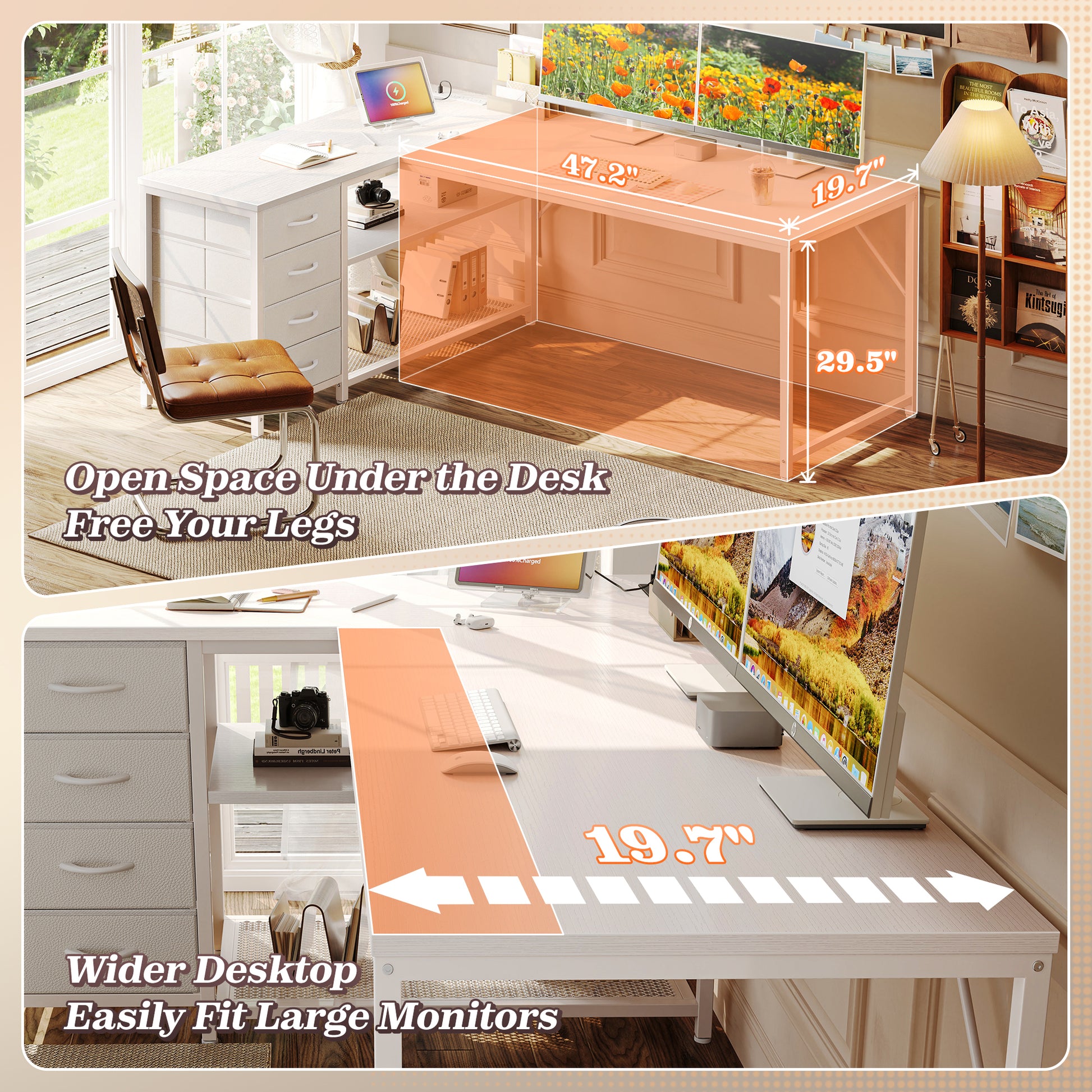 - 【Reversible L Desk with Storage】Utilize your corner space and get 2 distinct work zones with this work desk for home office that adapts to your workflow. Need one side for your laptop and another for your printer, craft projects or gaming setup? This home office desk wraps around you like a command center, giving you more focus than a straight desk ever could. With its reverisble design, this large desk is deal for multitaskers and various home layouts